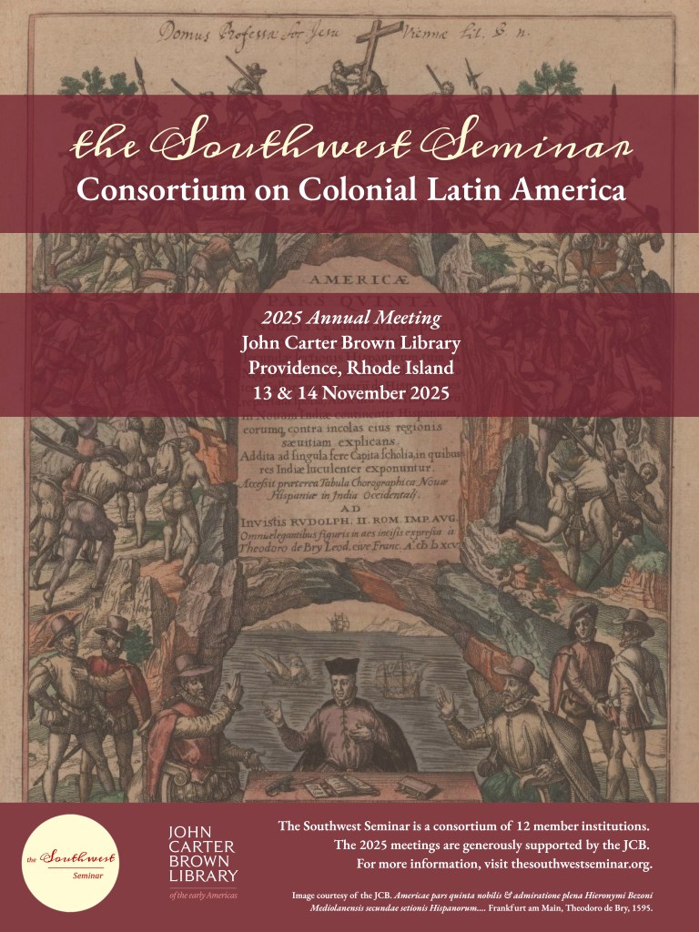 The 2025 Meetings: This year’s meeting represents a unique opportunity to showcase new research and reflect on approaches to the archive at the JCB Library, a leading institution dedicated to the early Americas. The first day of the meetings on Thursday, November 13 will be dedicated to a workshop of new research and the second day on Friday, November 14 will focus on plenary discussions about critical approaches to the field. The workshop will serve as welcoming and supportive venues to exchange ideas and to encourage collegiality among colonial Latin Americanists of varied backgrounds and diverse research interests. Thursday’s meetings are limited by space, but Friday’s session is open to the public. The agenda of the meetings is available here.